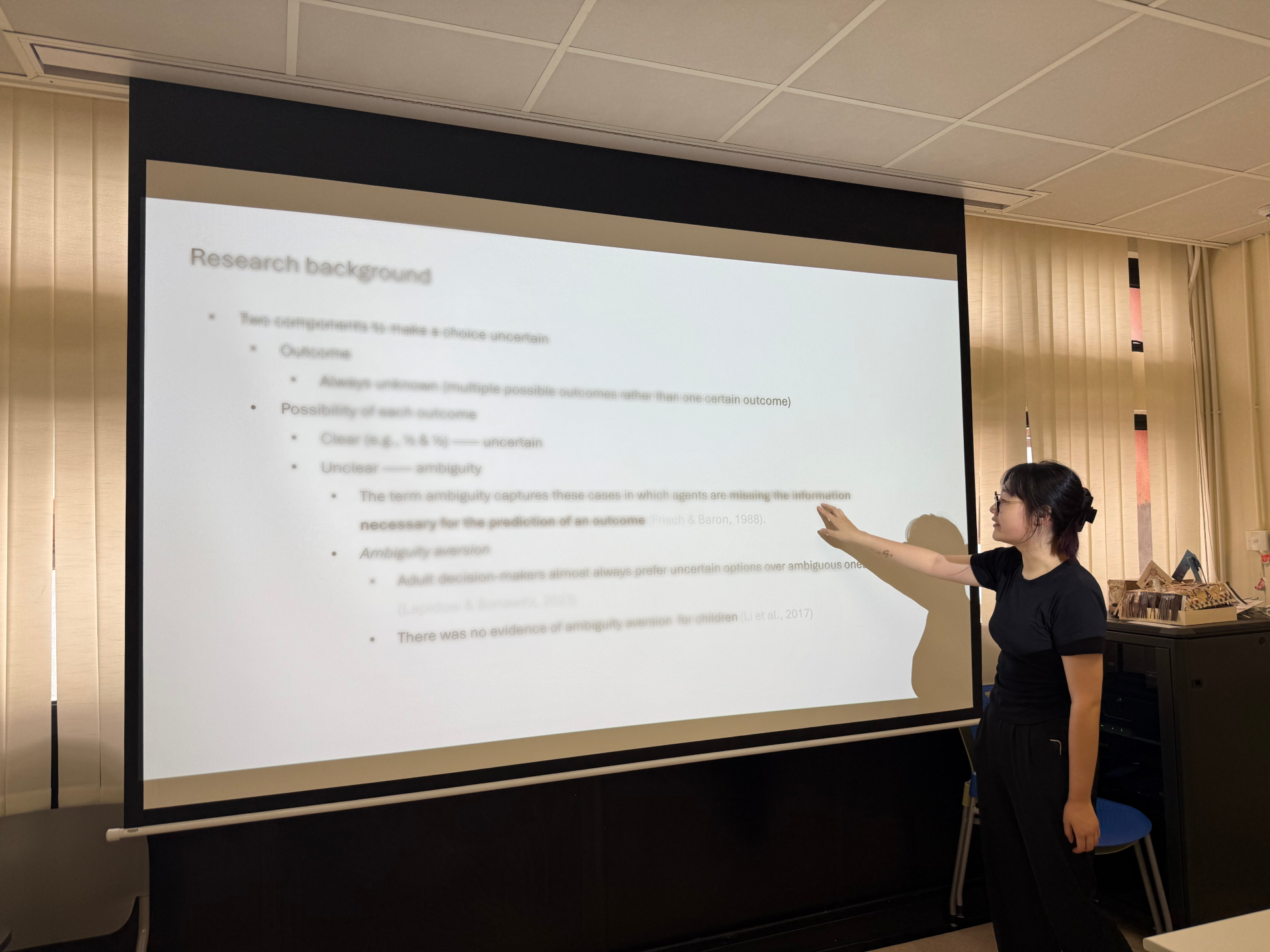 Our lab’s postgraduate student Qinli Deng presenting her work at the monthly research seminar held by the SLR Lab